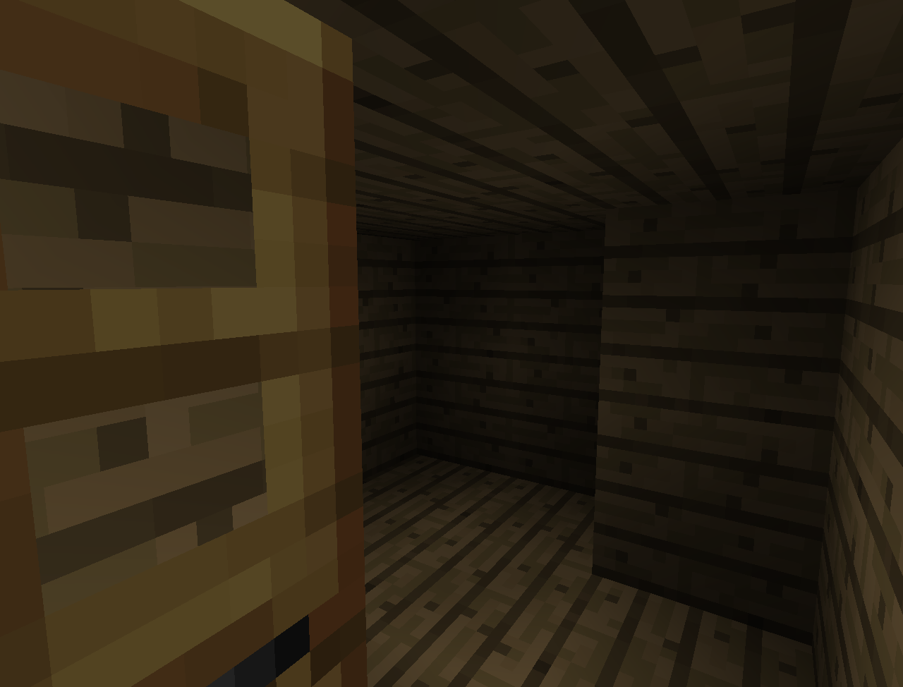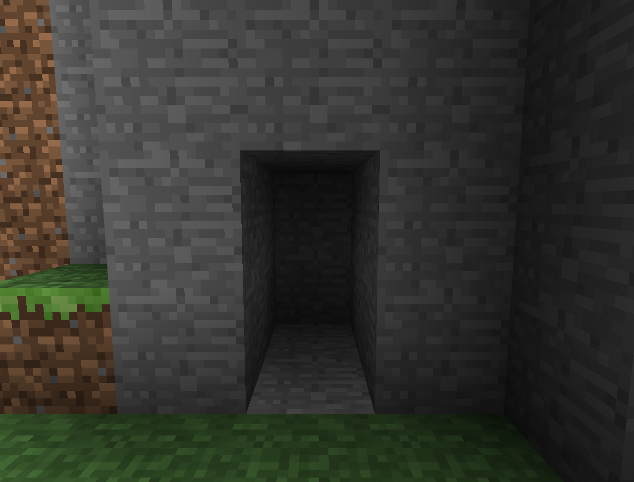 悬崖式洞窟可能是第一个晚上用得最多的庇护所了。它只需要几秒钟就可以完成,而且一旦进到内部,玩家可以安全地扩容它。它同样能为防止生物进入提供很好的保护(不包括爬行者:它们可以炸毁岩壁)。因为它是一个内嵌式的结构,所以建造它不会消耗建筑物料,反而能得到建筑物料。