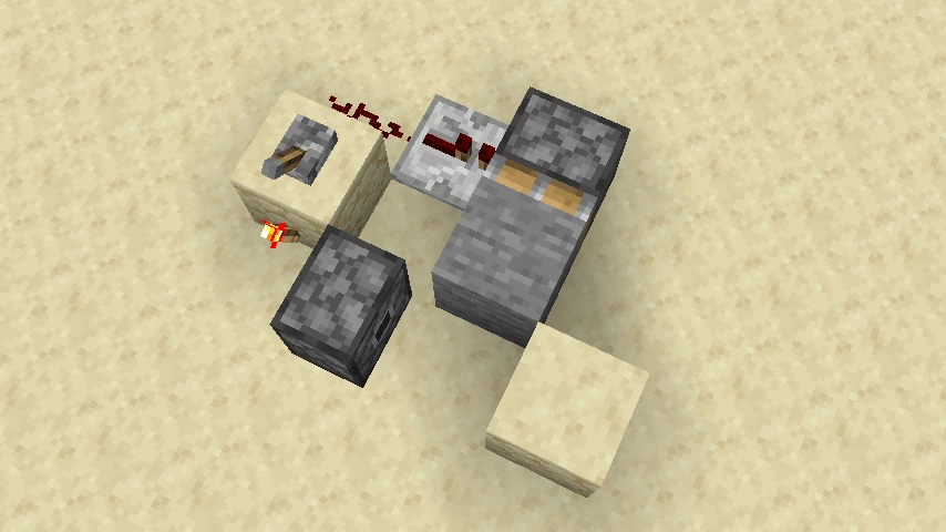 - 把两个圆石墙放在活塞朝向的那个空气方块的其余两侧。