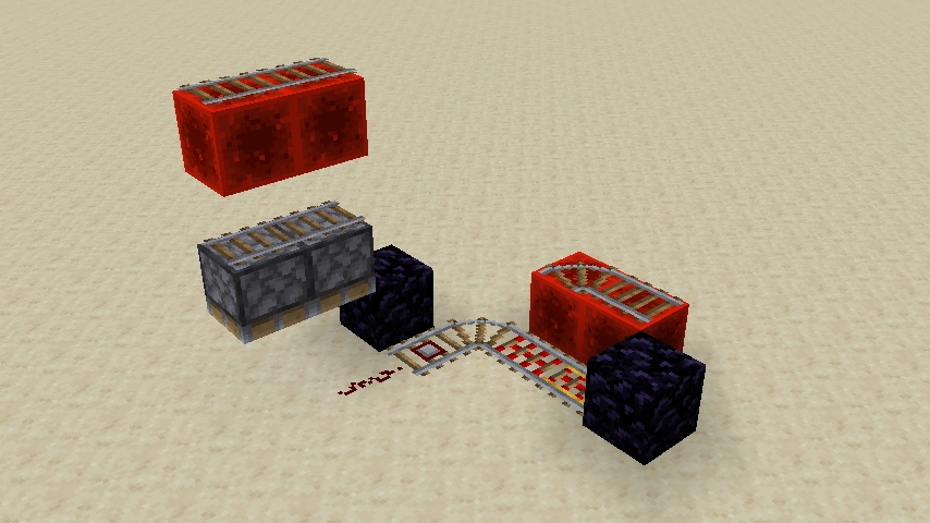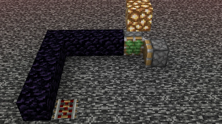- 黑曜石从激活铁轨后面开始放置,一直延伸到最近的活塞。