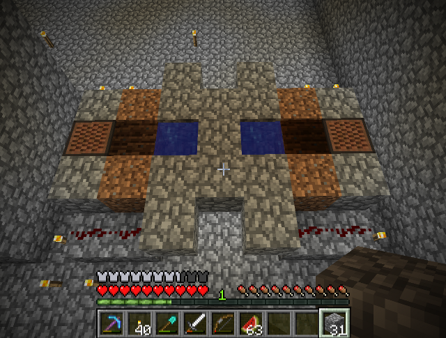 - 最后,盖上顶层,把水放出来,把那些临时方块挖掉。在最顶层,所有的水方块都是水源。(桶将有助于快速填充它们。)