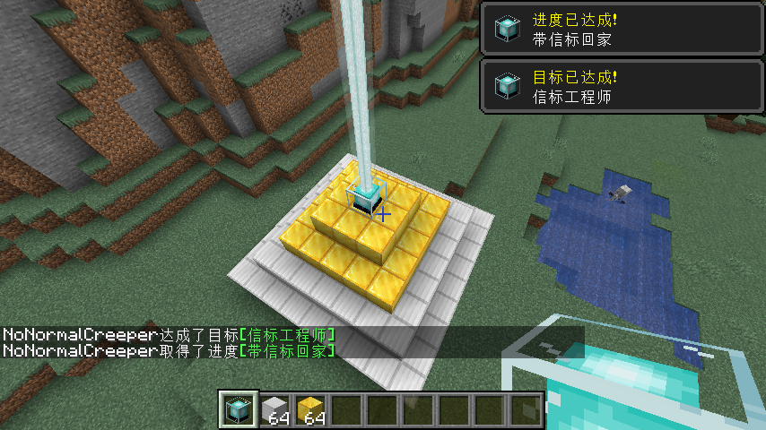 這個進度比較簡單,首先你要給任意工具附魔絲綢之觸附魔(用斧最快),具體怎麼做這裡不贅述。然後,找到一個蜂窩,用這個工具採集它,這個進度就完成了。推薦在夜間進行採集,白天時蜜蜂會出去採蜜,不一定滿足3隻蜜蜂的條件。可以使用鵝卵石或泥土等方塊堵住蜂窩的正面,蜜蜂只能從側面進入,而無法從正面離開。在確認有三隻蜜蜂以後採集蜂窩即可。