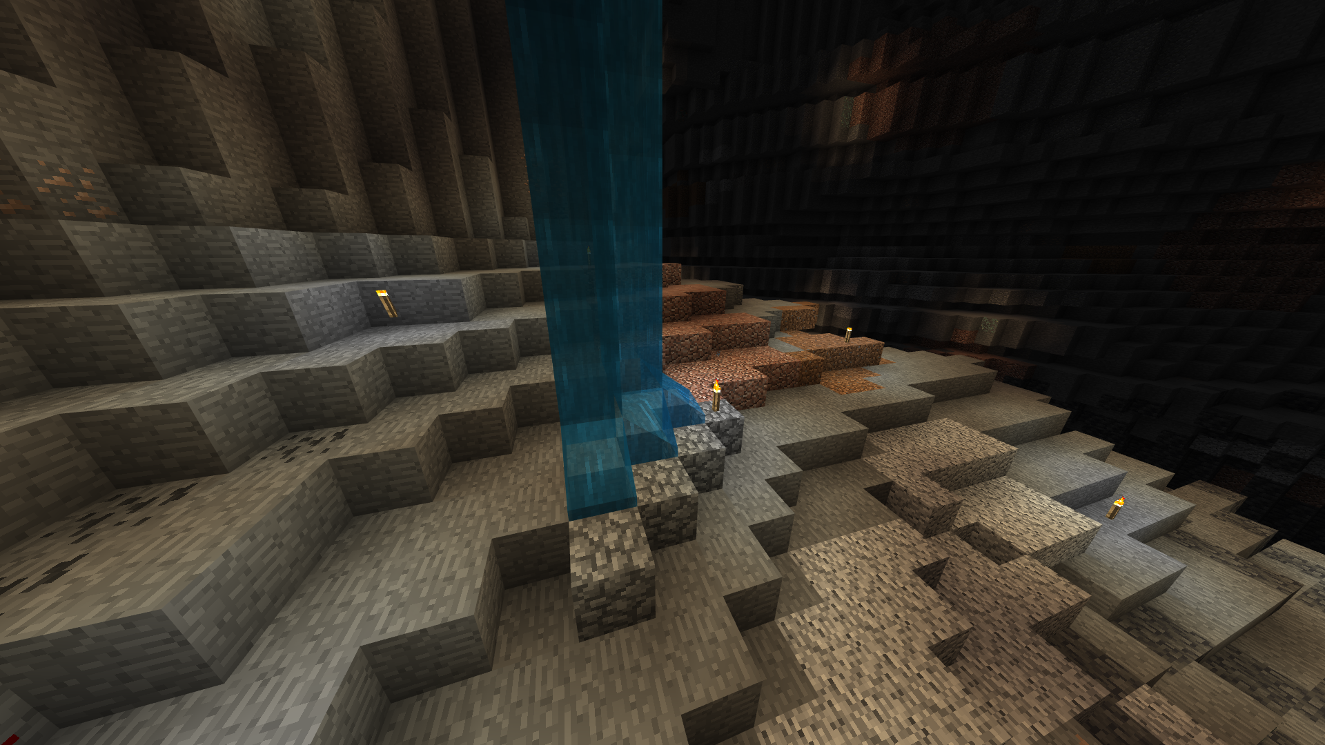 然而,大部分矿物都需要在地下开采得到。一般来说,在主世界地下的采矿分为洞穴采矿和人工矿井采矿两种方式。