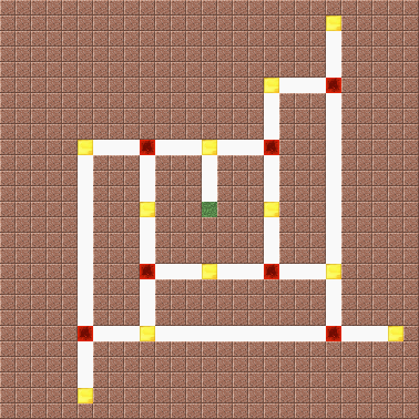 开放/迷宫矿井的连接从哪里进来?在您达到最低格,您可以继续伸展并连接原始推动/中心。一旦你连接你可以使用开放的风格,留下1宽路径或迷宫,留下2×2的宽。