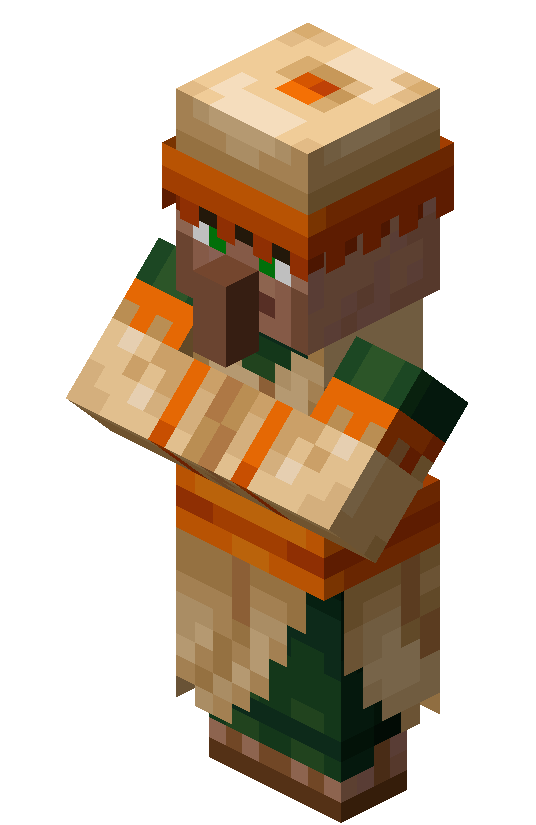 村民(Villager)是一种生活在村庄中的友好生物,它们会依自己的职业而工作,能够繁殖、与玩家以绿宝石为货币交易。它们的外观由其职业和村民本身所生成在的生物群系而定。