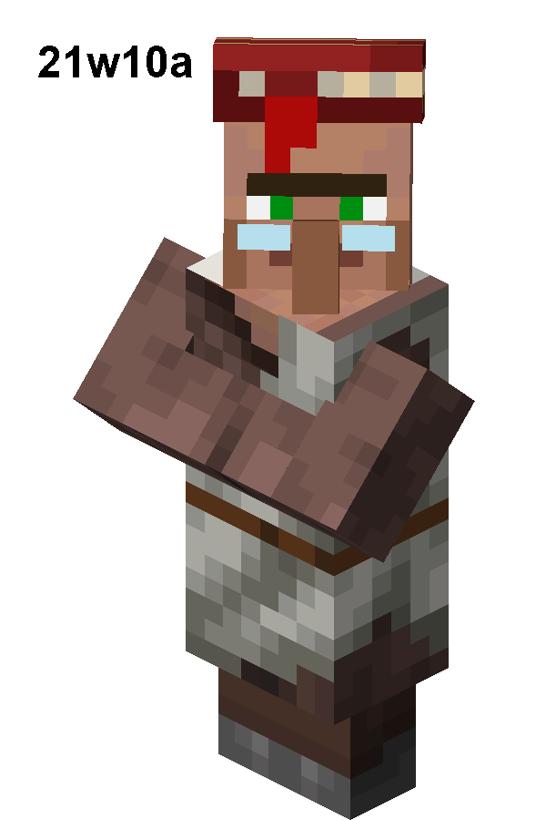- 当启用“Programmer Art”资源包时,所有村民的头部都会有一顶绿色的兜帽。