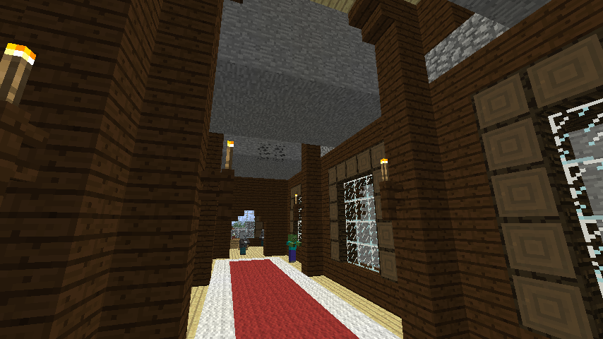 一個大的餐廳,內有三張桌子,天花板上掛着一個枝形吊燈。兩個衞道士和一個喚魔者總是在這裏生成。 | 255 Birch Wood Planks