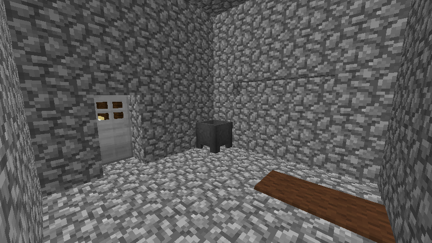 一個有拋光安山岩拱門的房間。有一個嚴重耗損嘅鐵砧在角落裏,兩塊熔岩被拋光的安山岩堵塞防止蔓延。因為拋光安山岩是石頭的一個變種,它可以由石春、石頭代替,或石的其他變種。一個衞道士總是生成在這裏。 | 146 拋光安山岩,
