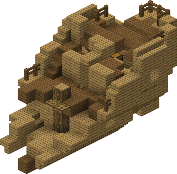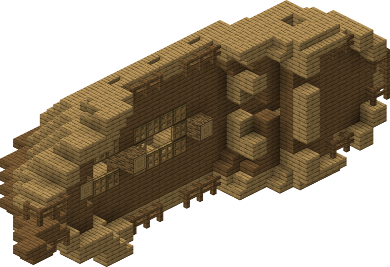 | rightsideup_full_degraded | 上一结构的侵蚀变种。甲板有大裂口。 | 10 橡木原木 243 橡木木板 |