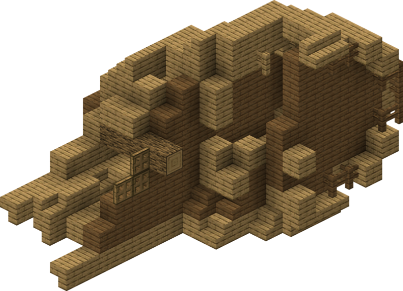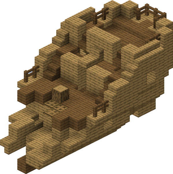 | upsidedown_backhalf_degraded | 上一结构的侵蚀变种。船底外壳被略微侵蚀。 | 4 橡木原木 167 橡木木板 |