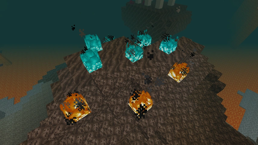 /setblock進行放置也一樣。[僅Java版] - 靈魂火(或者說藍火)確實存在,並且是由硫的燃燒引起的。能生成靈魂火的方塊——靈魂土和靈魂砂,可能包含大量這種元素,這是由於它們很像火山灰。