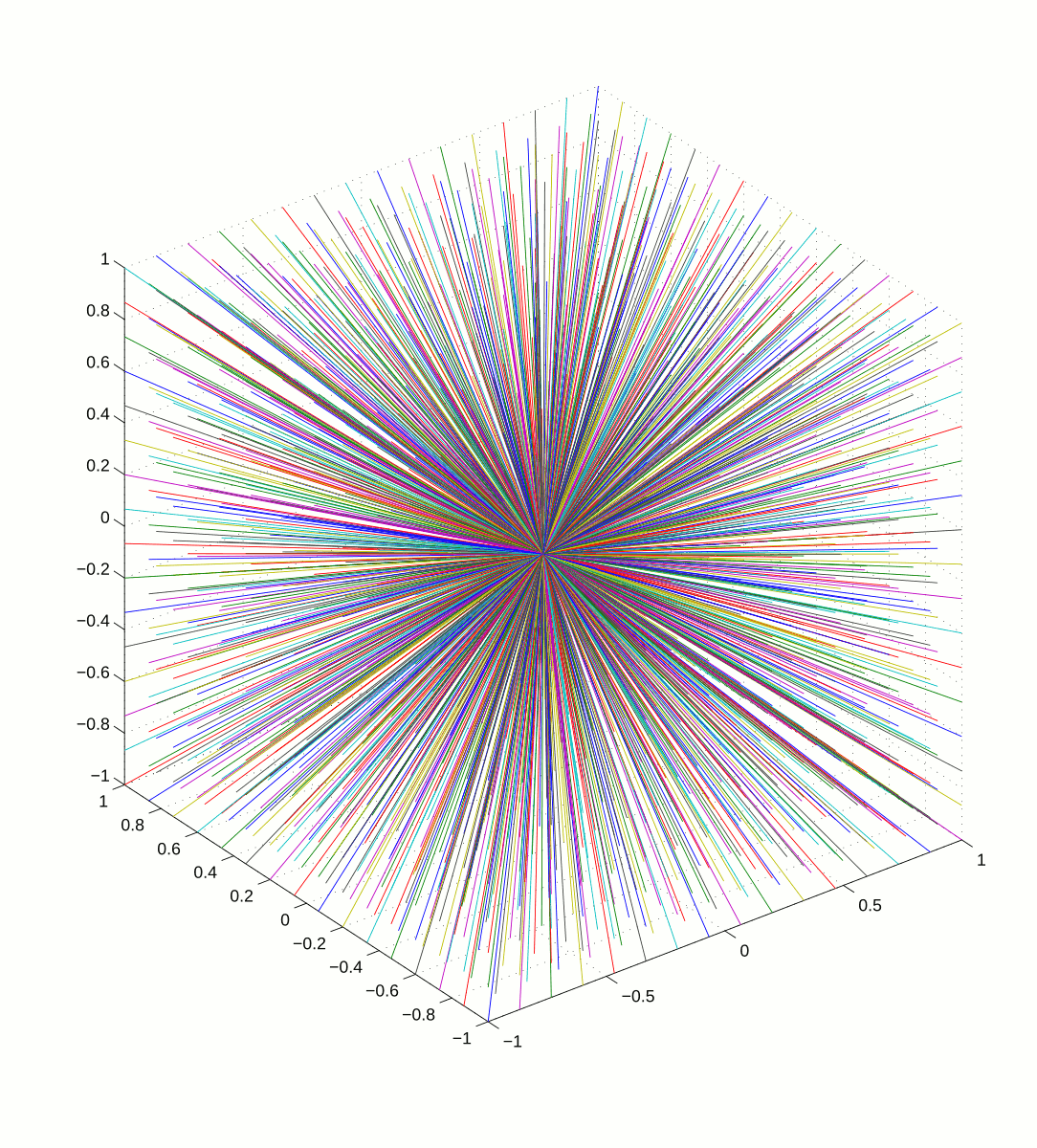1352條射線從爆炸中心擴散至邊長為2的立方體表面。(僅用來展示其擴散方向,並不代表實際長度。)