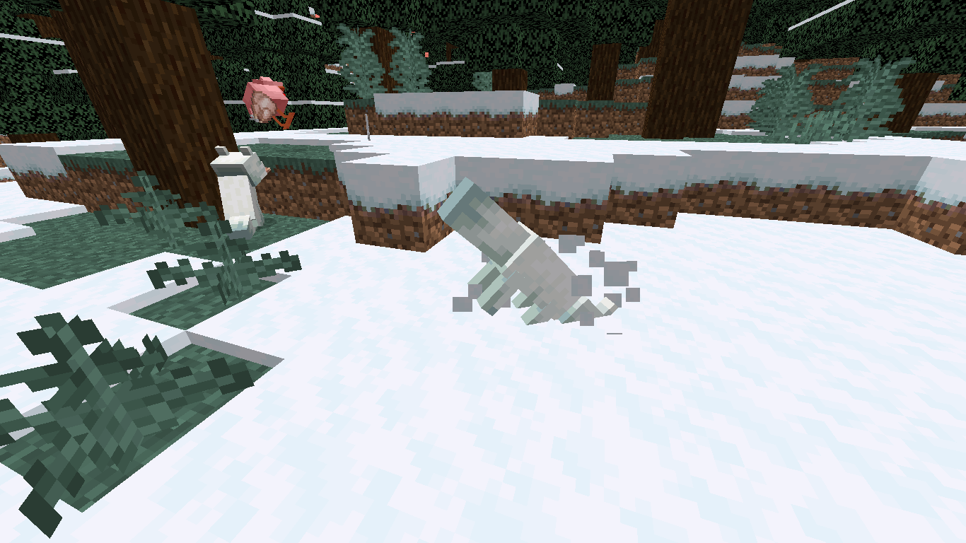 扑向雪层的狐狸会被暂时陷进雪层中,面朝下并发出粒子效果,不久后恢复正常。