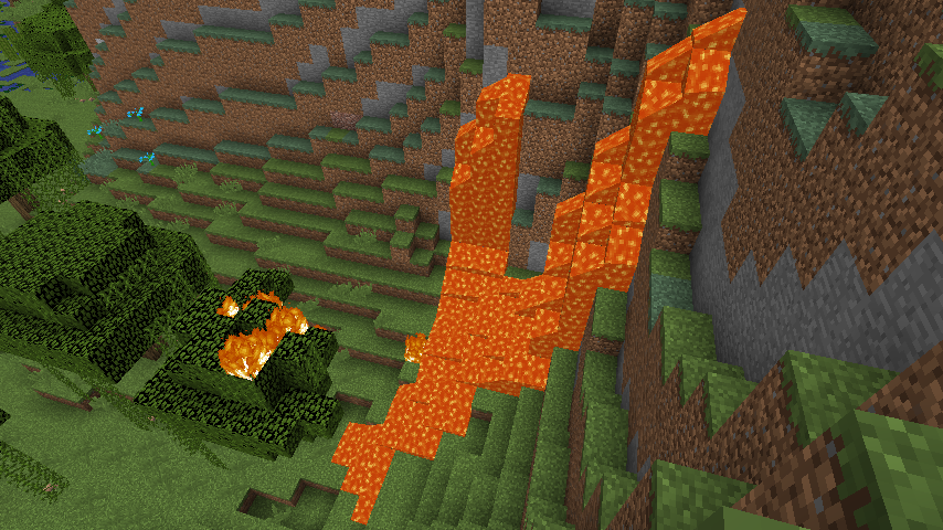 - 在以前的版本中,在雪为固体之前,一个熔岩池能够被飘雪覆盖上面,从而使其在雪融化前成为一个致命陷阱。