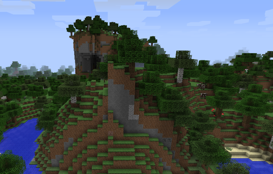 一个多高山的生物群系(一些山高度达到y=124),有灰蓝色的草地和很少的树,悬崖,山峰,山谷,瀑布,岩突,浮岛,还有其它更多的结构,构成了一幅美丽的画卷。在y=95以上的地区会有积雪。这里的地下洞穴系统比其它任何生物群系都多。坠崖是常有的危险,因为这里存在许多峭壁并且有可能因为高度差太大导致巨大的跌落伤害甚至导致死亡。山脉是唯一自然生成绿宝石和蠹虫怪物蛋的生物群系。 |