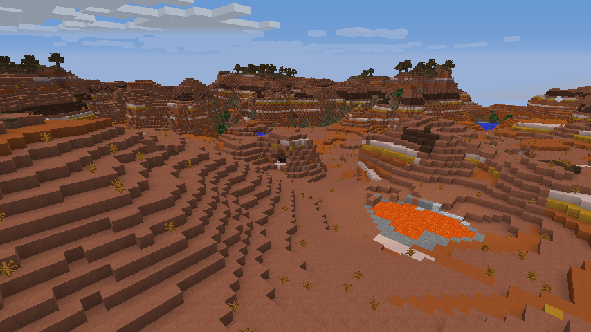 | 若恶地的海拔高度超过15米,陶瓦与彩色粘土层不会超过15米厚。除了在Y=32以下的2条金矿矿脉外,现在会尝试在海拔32至79之间生成20条矿脉。另外可以在地表生成深色橡木废弃矿井。 | |||||