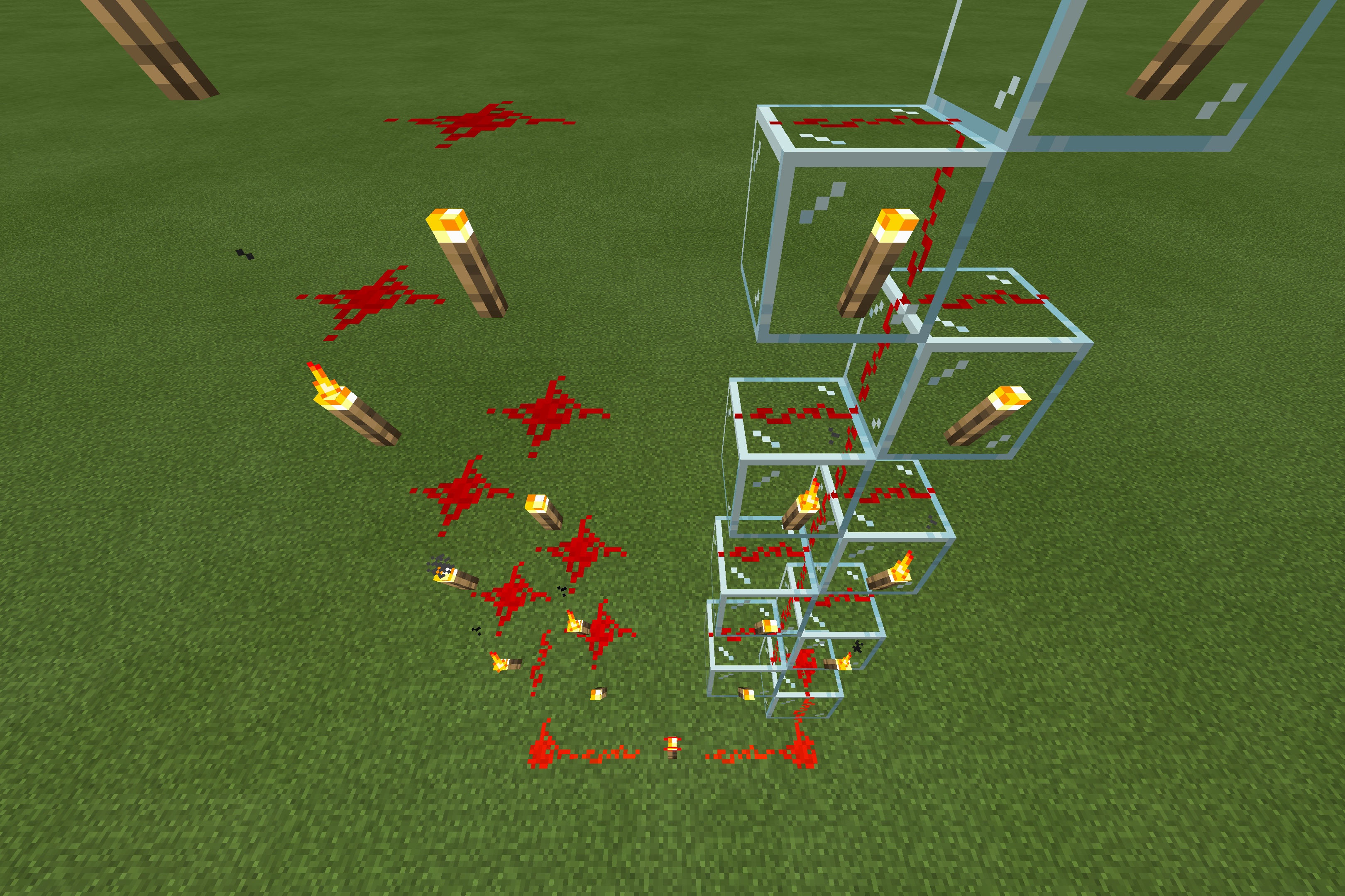 附着紅石粉和火炬並傳遞了紅石訊號的結構空位,其中的結構空位被顯示