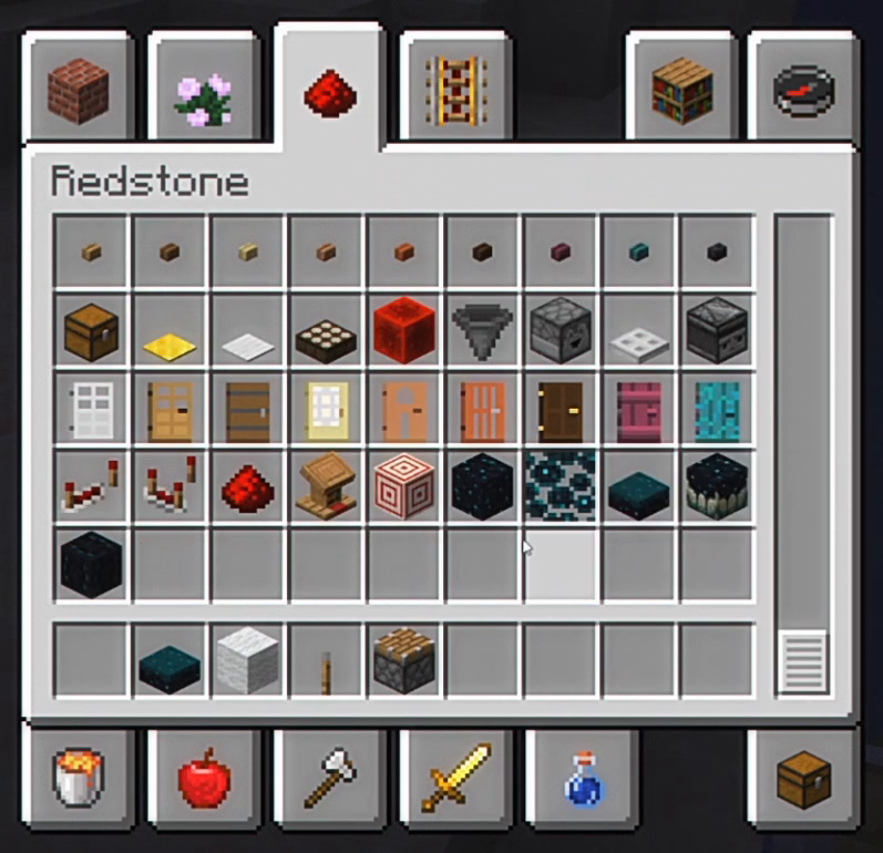 此圖片展示了Sculk Block被歸類在「紅石」中,這說明Sculk Block及其變種均可用於紅石用途。