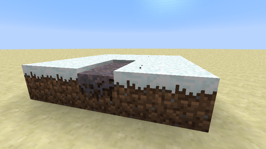 在蘑菇生物群系中天然生成的洞穴和峡谷不会替换掉菌丝,通常会在峡谷底部留下薄薄的一层菌丝,或在洞穴中留下“条状”的菌丝层。
