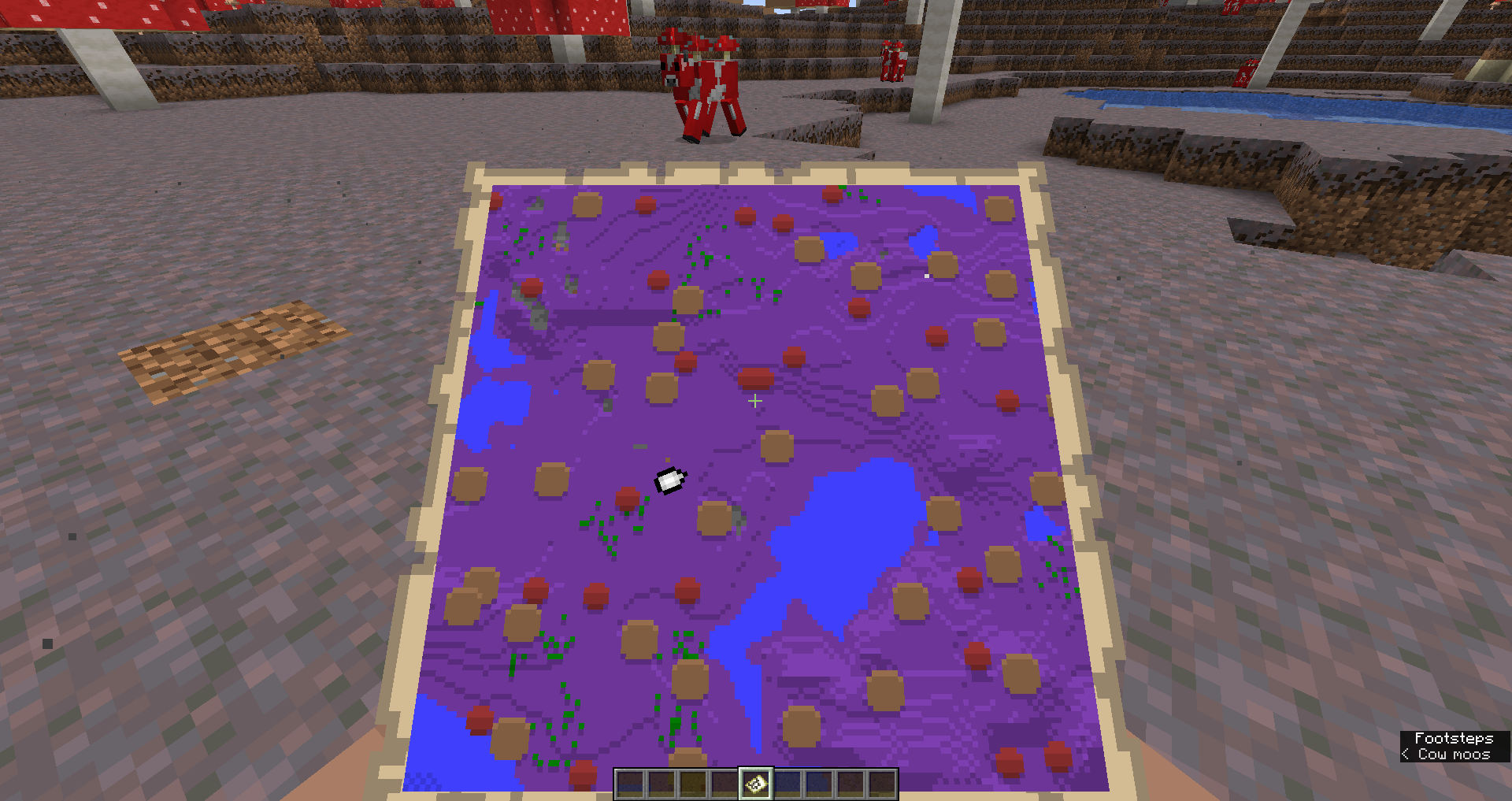 菌丝体在Minecraft中的定位是一种泥土方块,上方覆盖着紫灰色的丝并且散发着奇怪的粒子。不出所料,菌丝体自然出现在蘑菇岛生物群系,而且尽管它不利于大多数农作物生长——它甚至无法犁成耕地——但蘑菇在上面可以轻松地生长蔓延,无论光照强度如何。