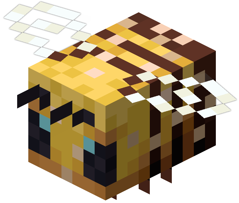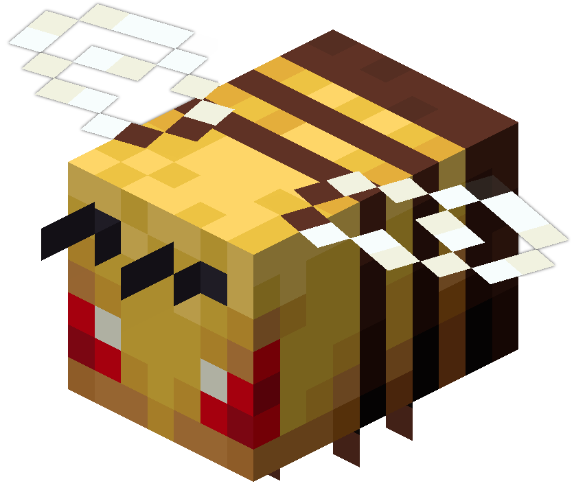 - 蜜蜂是Minecraft中第一種會飛的中立昆蟲類生物。