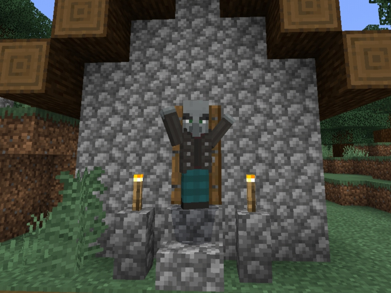 - 在基岩版中,玩家可使用命令生成带有袭击行为的灾厄村民,例如生成一个袭击事件中可以破坏木门的卫道士: