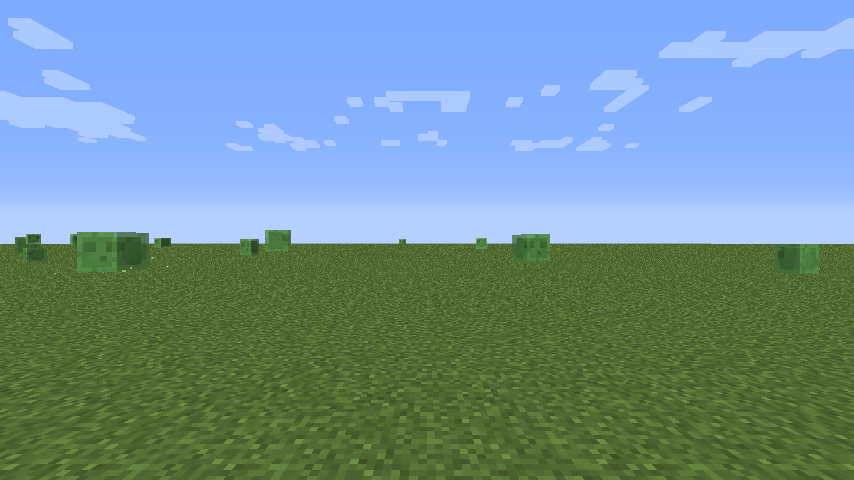由于NPC村庄中有箱子,而且NPC村庄经常在出生点附近生成,所以可以在超平坦世界(经典平坦)中挑战生存模式。然而,数量庞大的史莱姆让这挑战相当困难,除非你开和平难度。