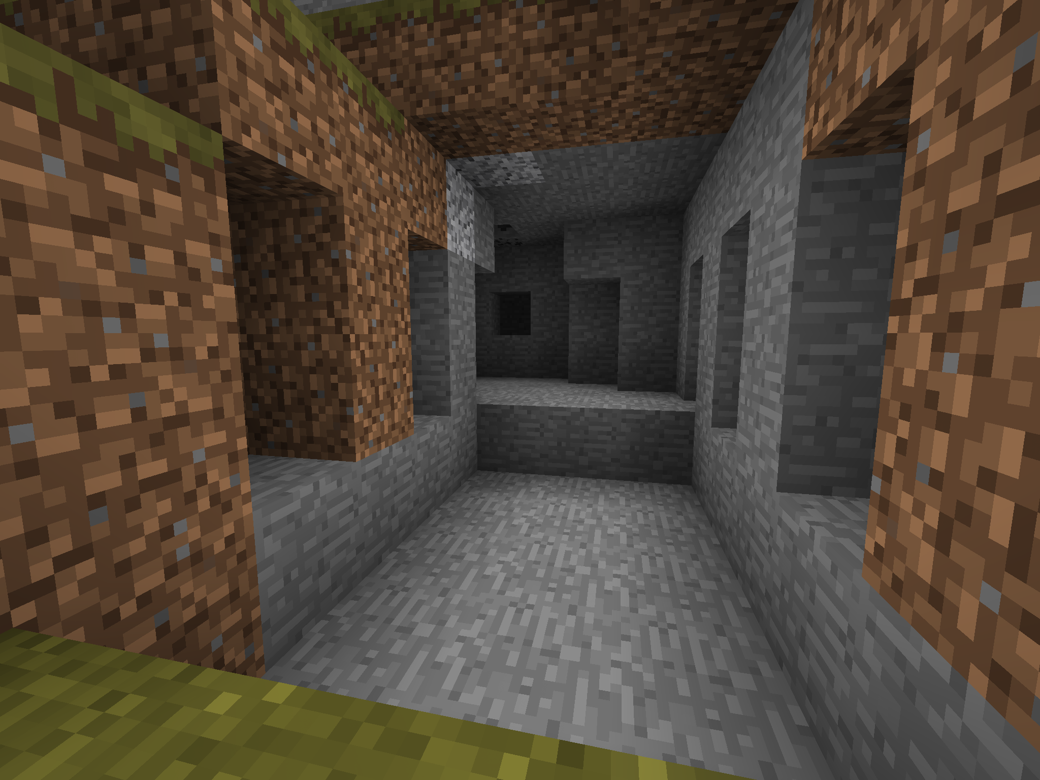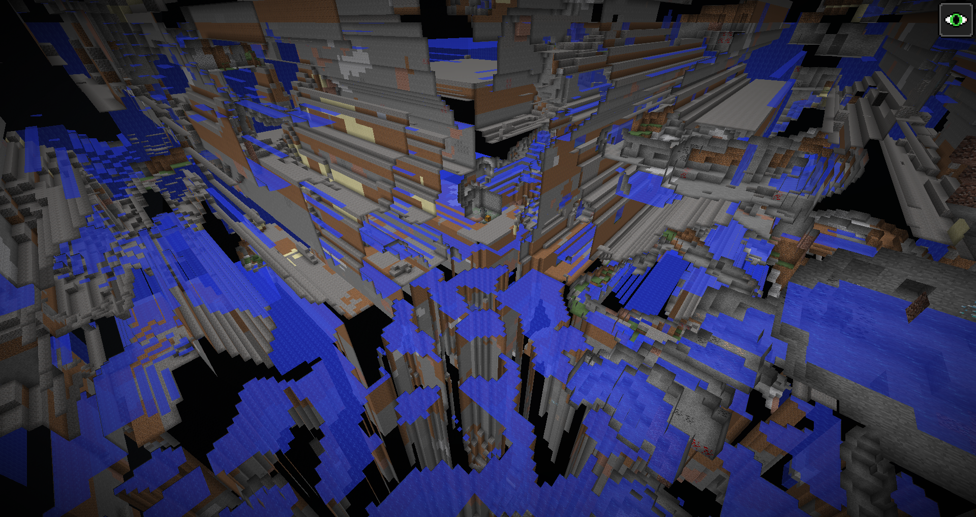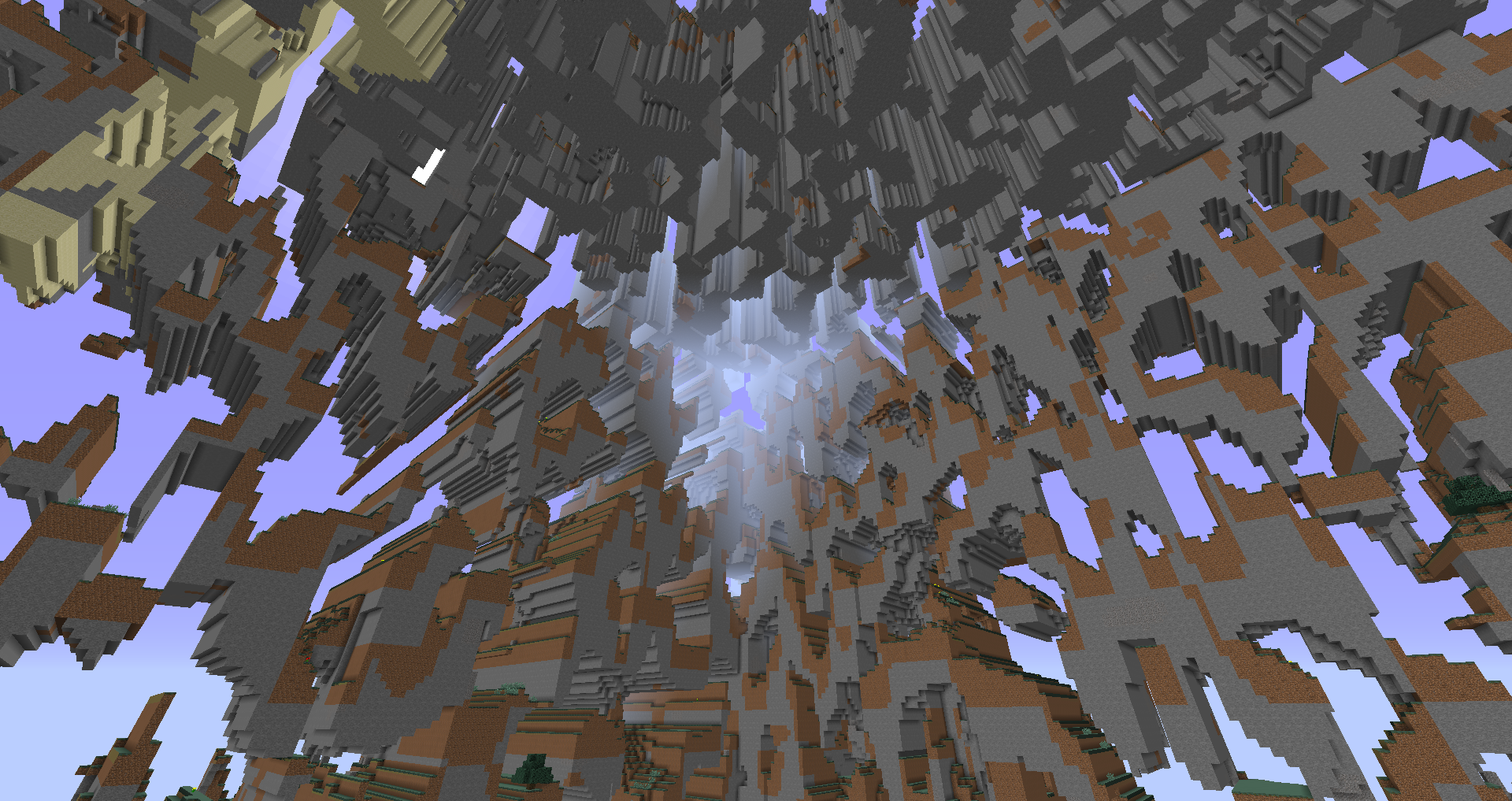 - 最頂層:這一層在世界的最高處。有時候這一層可以矮一些,但陽光可以直射到,且也不會被水掩蓋。因此這一層地形的下陷處會出現樹木和被動型生物。由於地形的較高處幾乎就達到了世界的高度限制,因此很少會出現樹木和動物。