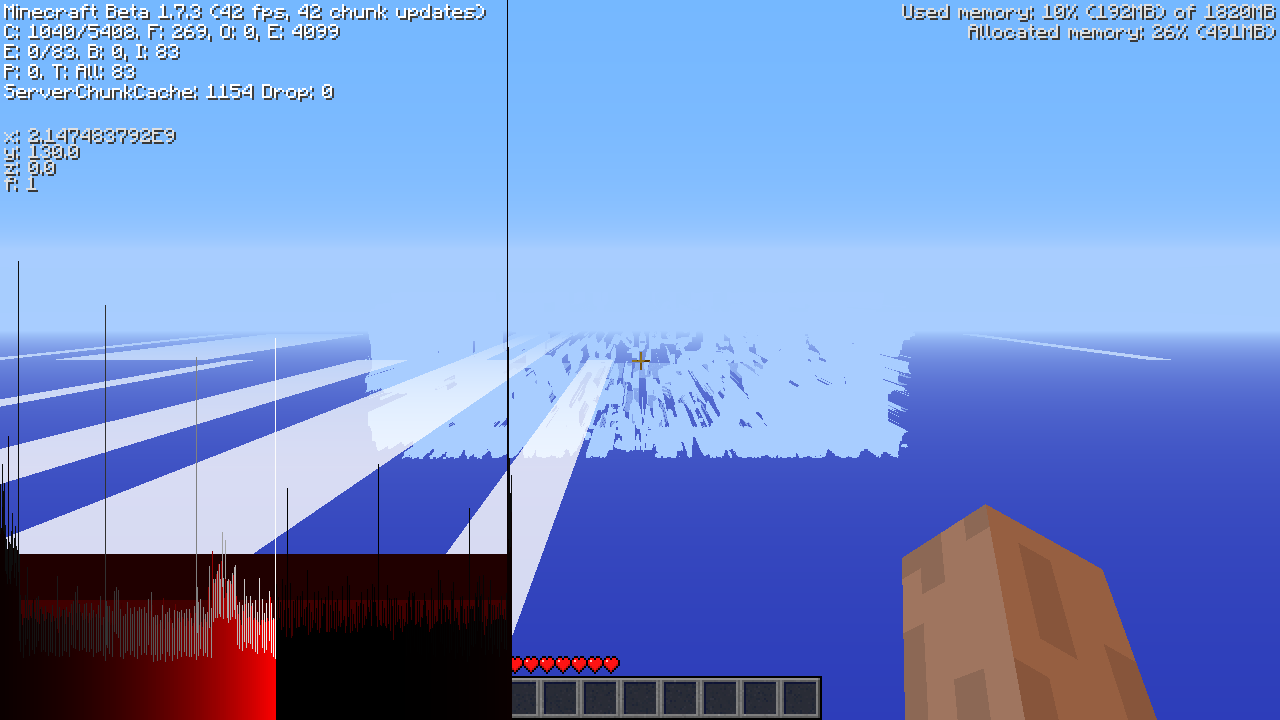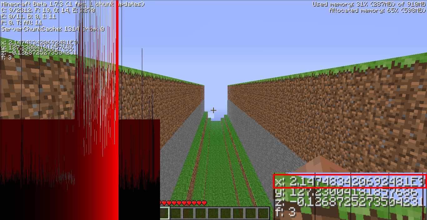 - 到達X/Z ±4,294,967,296或更高位置是非常危險的,因為崩潰的機率(假設是在64位元Java上)非常高,且位置越高,崩潰機率越大。