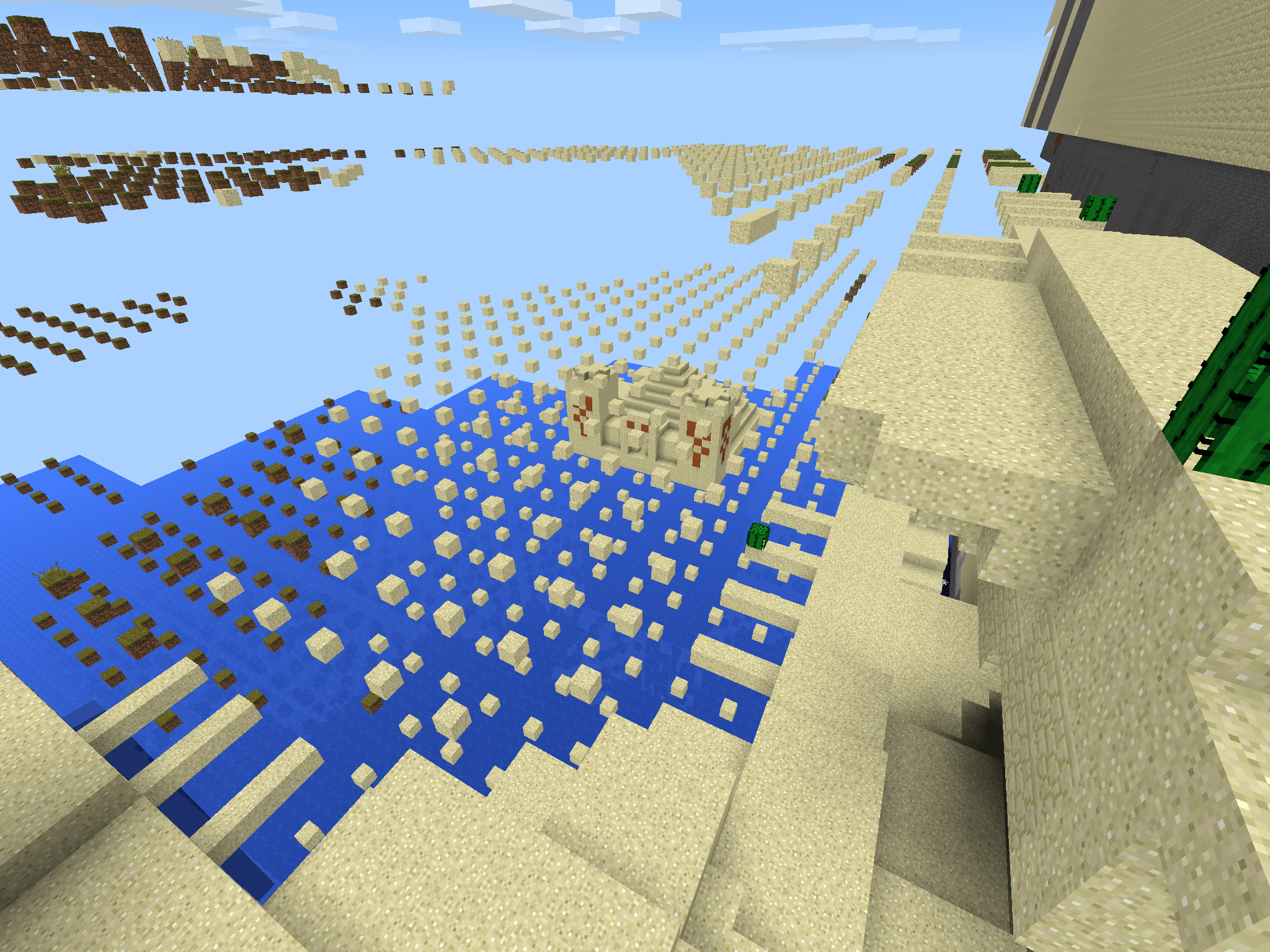 - 在225後每個2的n次方,地形異常會導致在再次生成扭曲地形之前要生成的區域附近生成一些區塊。該現象只在樹生成在X/Z ±32000000之前出現,該位置是方塊物理性質無法正常工作和亮度停止工作的地方。該現象會持續直至X/Z ±2147483647(世界繪製停止工作和表面材質生成失敗的位置)。