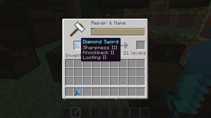 4) 每次通过铁砧获得物品时会多花费两个等级。也就是通过两把锋利3的剑获得锋利4的剑时,所花费比单纯获得一把锋利4的剑所需等级多两个等级。