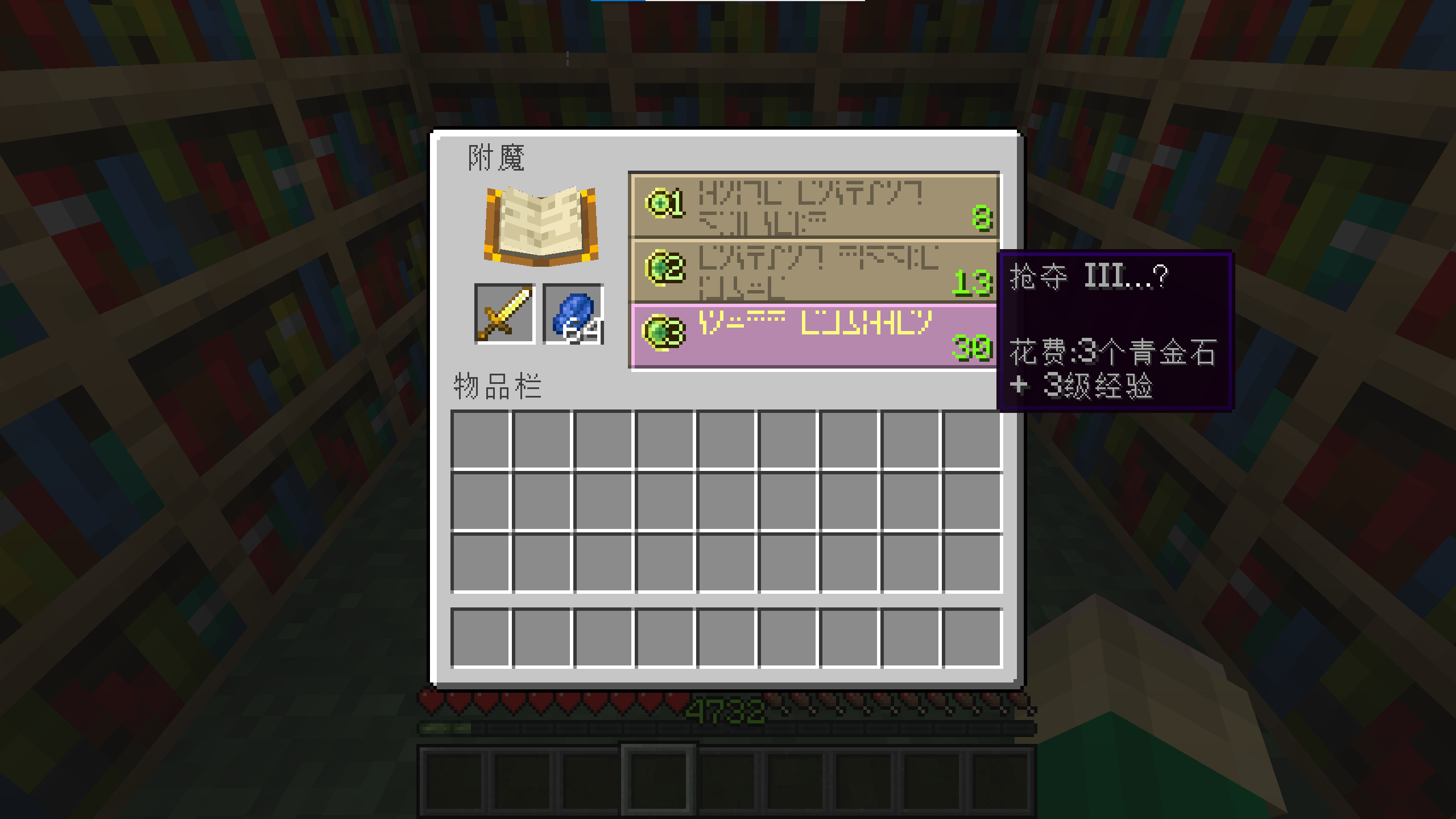 | 可以对书附魔,及使用附魔书为工具附魔。 | |||||