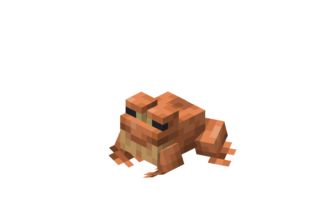 青蛙有绿色、橙色和白色3种肤色。虽然这些变种在游戏内部按温度命名,但它们的生成与生物群系的温度值并无关系。