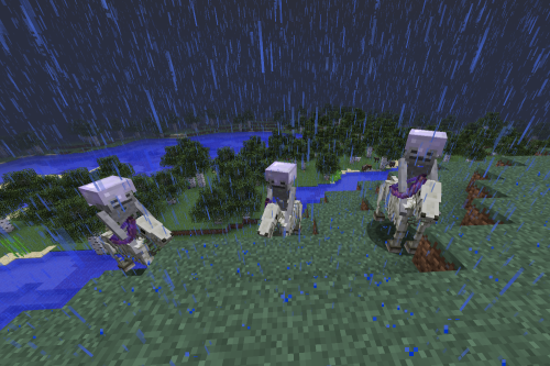 - 即使游戏规则MobSpawning设置为false,骷髅陷阱马依旧可以在雷暴中产生。