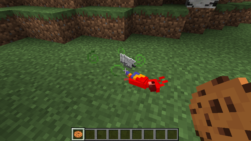| 尝试给鹦鹉喂曲奇吃,会立即杀死鹦鹉。因吃了曲奇而死的鹦鹉会在死亡时发出中毒粒子。在Motherboard的一封电子邮件中,Jens Bergensten解释说:“我们最初使用曲奇有双重的理由:一是它给予了曲奇在Minecraft里的存在感,二是它微妙地参考了Nirvana的歌曲“Polly.”(鹦哥)然而,我们没有考虑到巧克力原料对于现实的鹦鹉意味着什么!” [7] | |||||