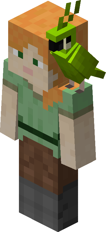 鹦鹉会聚集并落在附近的生物旁,包括中立生物和敌对生物。