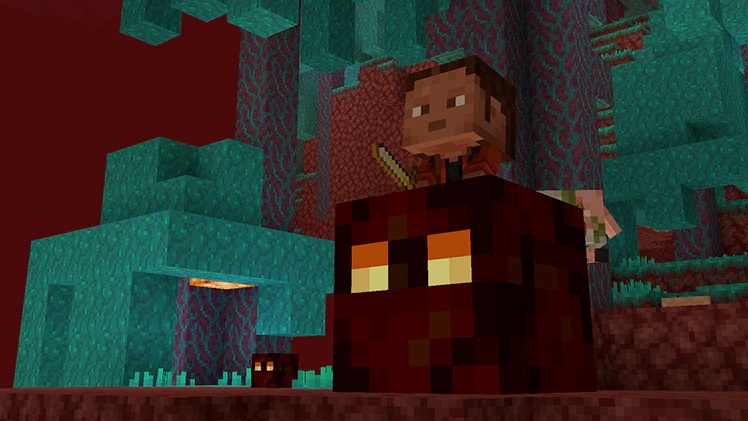 - 可对其按下使用键吃掉该方块的一角(棱长0.5格的正方体,1⁄8个方块)。