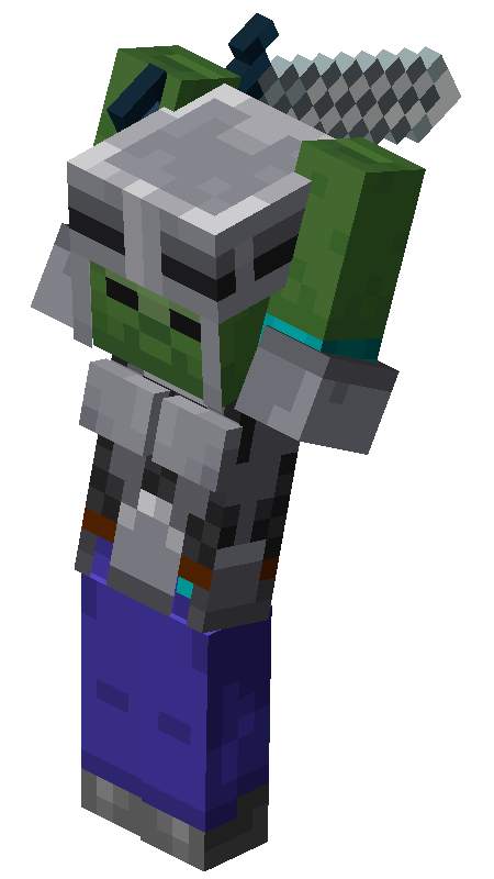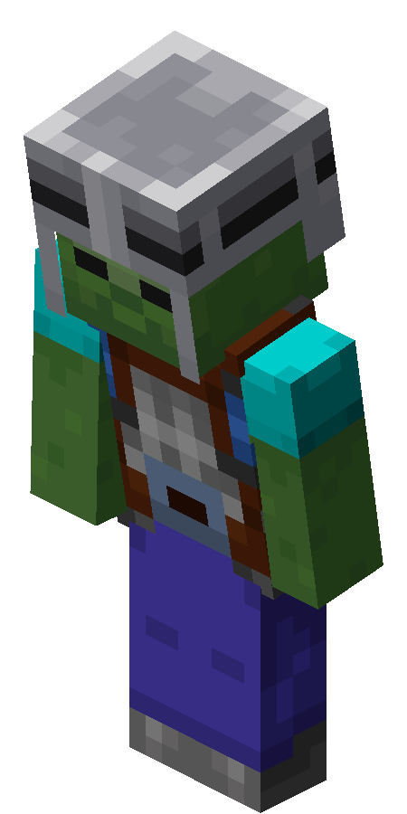 有時殭屍會穿戴盔甲並手持武器,一種是裝備著鱗甲和強化鏈甲的頭盔,右手持單個雙持匕首,體型相比普通殭屍更大;一種是裝備著全套強化鏈甲,手持劍,擁有更大的體型。