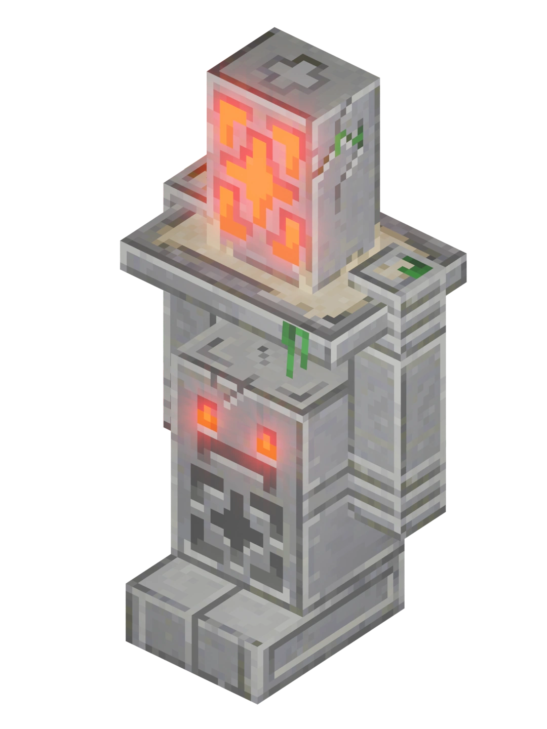 冒险中心的外观是一个巨大的图腾,带有一个冒险点数图标底座支撑起的平台。它由石头制成,冒险点数图标和眼睛都是橙色,当玩家连接到Mojang服务器时会发光,当与服务器断开连接时为灰色。