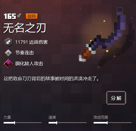 无名之刃(Nameless Blade)是Minecraft Dungeons中的近战武器。它是弯刀的变种。