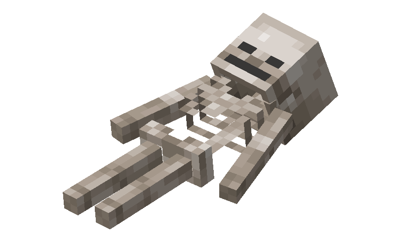 - 在游戏动画文里,骷髅有一个“前方受击”的未使用动画,该动画在Minecraft Dungeons Arcade中使用。