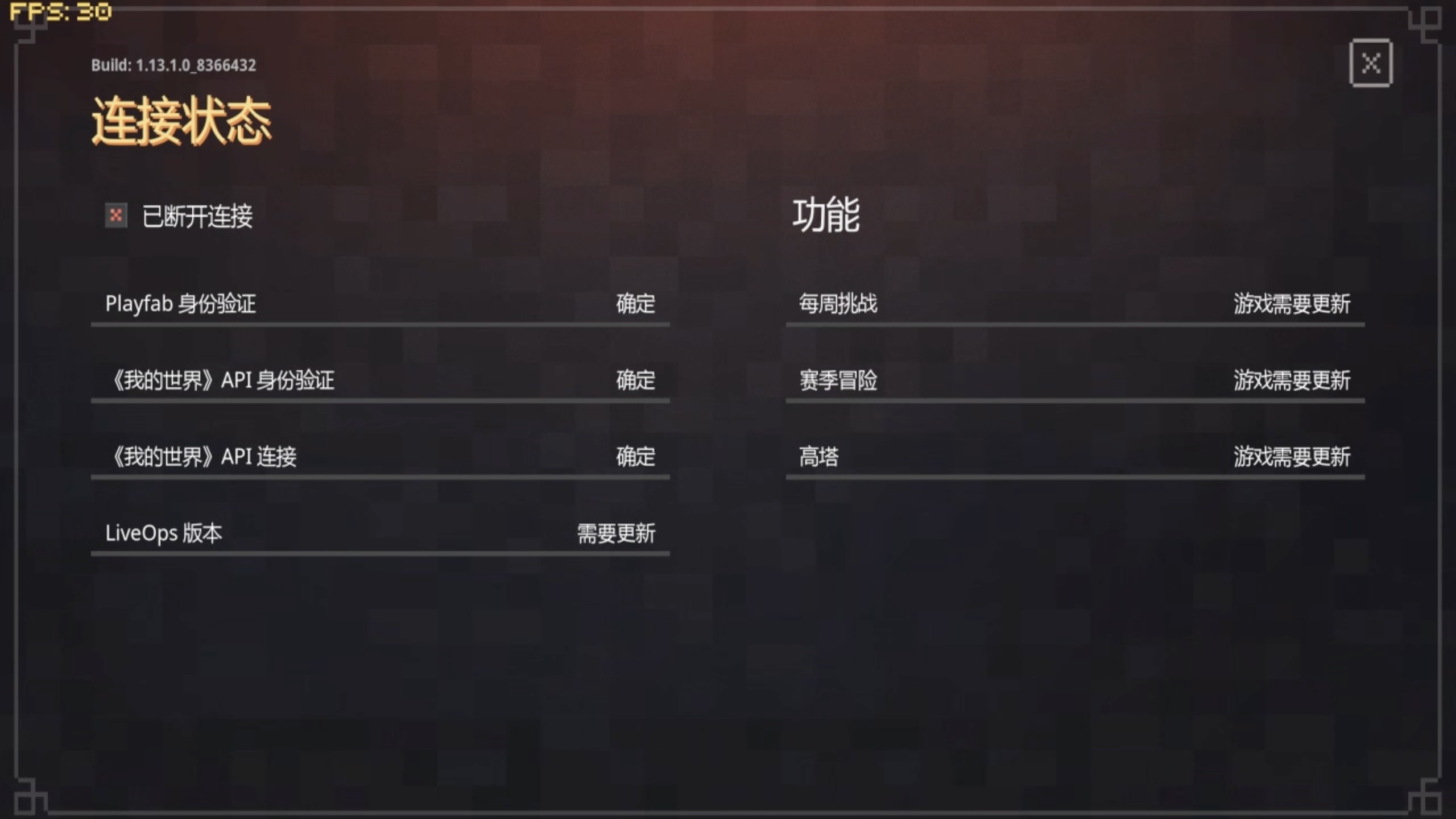 - 每次主要版本更新之前,Minecraft API通常会部分暂停服务五个小时以更新在线游戏内容,期间玩家处于离线状态,游戏活动不会记录,高塔无法进行游戏,但多人联机、每日挑战、季节挑战(如有)不受此影响。实际验证发现,服务更新时